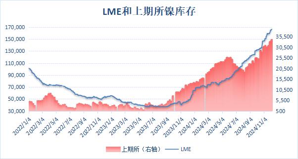上期所公布的數(shù)據(jù)顯示,12月6日當周,滬鎳庫存繼續(xù)回升,周度庫存增加3.26%至34,090噸,刷新逾四年最高位。